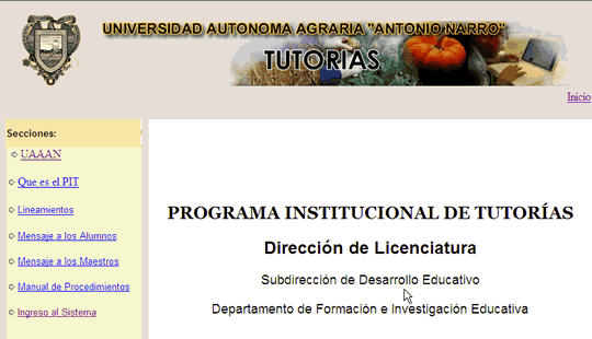 INSTITUCIONAL DE TUTORIAS 1.- Ingresar a la dirección electrónica: 2.-Encontrarás la página del PIT (Programa Institucional de Tutorías), con la siguiente información: